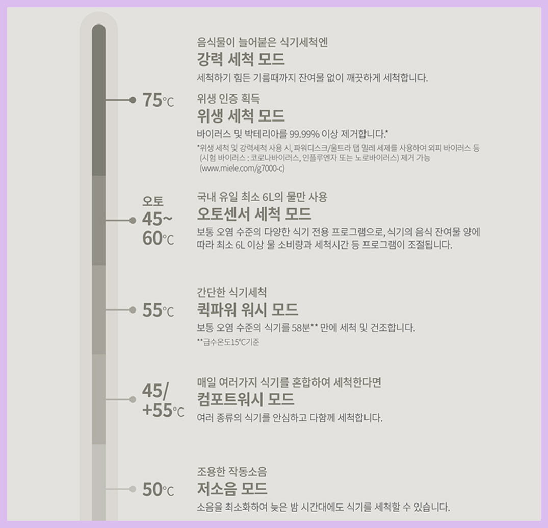 있으며 세척하기 힘든 기름때까지 잔여물 걱정 없이 깨끗하게 세척해 주는 밀레