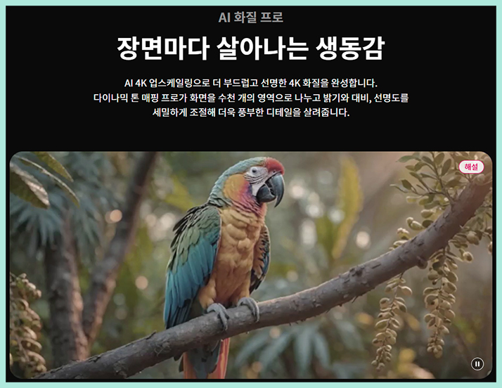 AI 4K 업스케일링으로 더 부드럽고 선명한 4K 화질을 완성해 주는 AI 화질