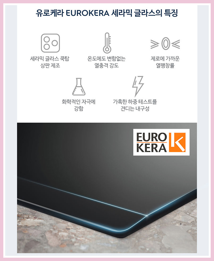 충격 및 스크래치 고온에 강한 유로케라 세라믹 글라스 재질의 상판을