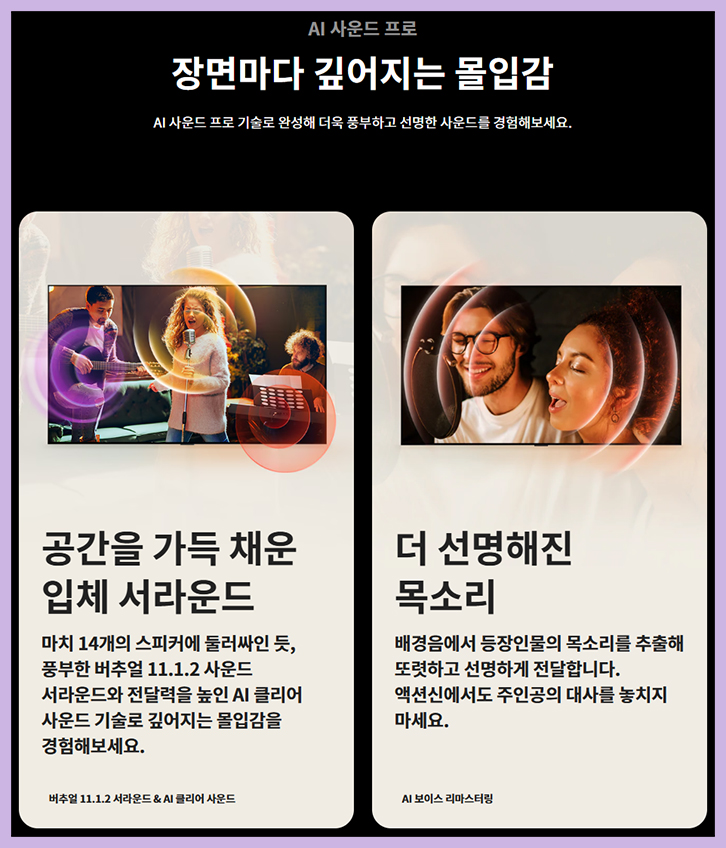 하고 사운드 역시 AI가 콘텐츠 유형에 맞게 자동으로 조절해 입체감 있고 풍부한