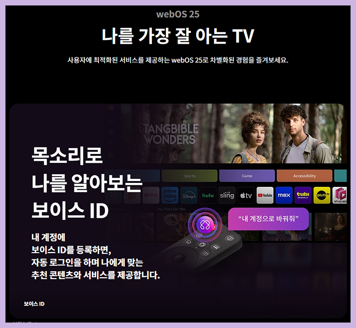 하며 음성 명령으로도 쉽게 원하는 콘텐츠를 검색하고 실행할 수 있고 스마트 연동