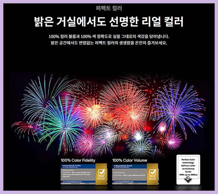 무한대의 명암비에 더해 밝기와 색 재현력을 크게 향상시켜 더 풍부한 색감을 경험