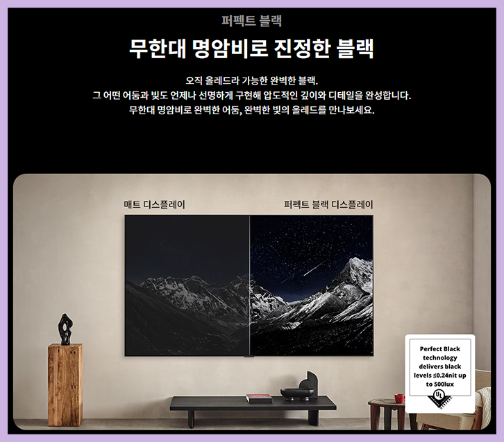 보다 더 밝고 선명한 화면을 구현해 주는데요 자발광 소자의 완벽한 블랙 표현과