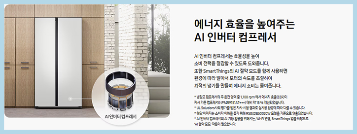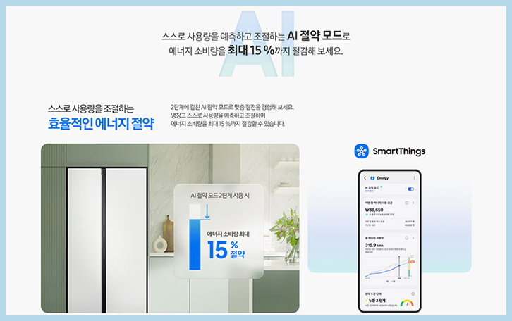 냉장고 는 이를 통해 전력소모를 줄이고 환경 보호에도 기여하는 AI 절약모드
