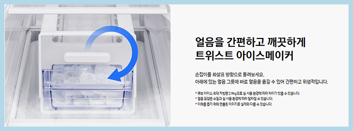 가지고 있어 일반 가정용 냉장고 보다 넉넉한 수납 공간을 제공하여 대가족