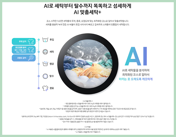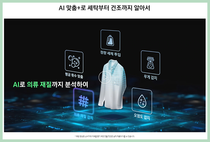 종류를 자동으로 인식해 가장 적합한 세탁 코스로 세탁해 주기 때문에 세탁 시간을