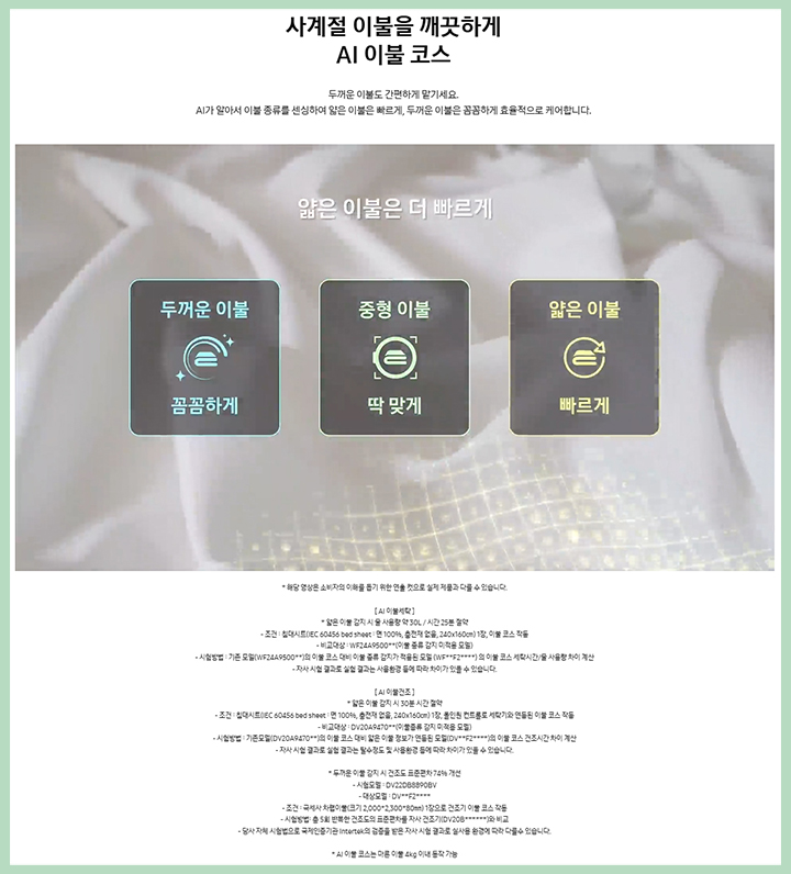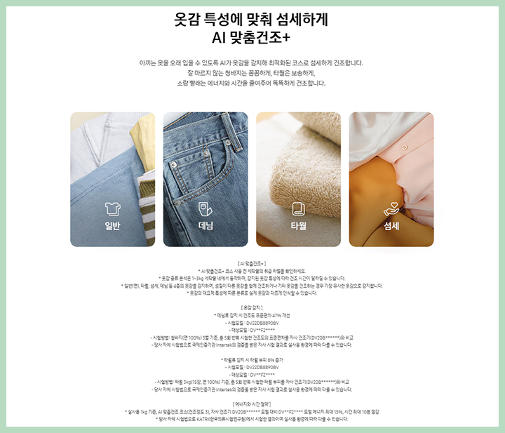 가 있어 섬유 종류별로 최적의 세탁 건조 환경을 제공해 옷감 관리가 뛰어나고 옷에