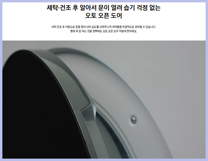 건조 후 자동으로 문을 열어 내부 습도를 낮춰 주니까 세탁물을 위생적으로 관리할