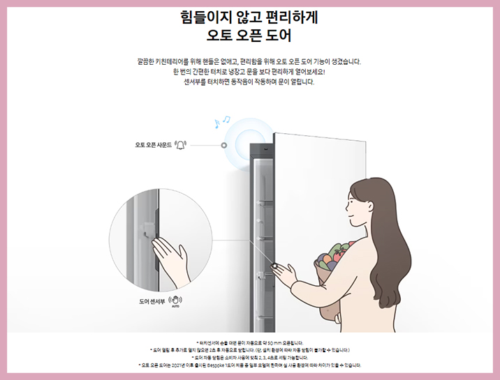 터치 센서를 탑재하여 도어를 보다 손쉽게 열 수 있도록 설계되어 있어요