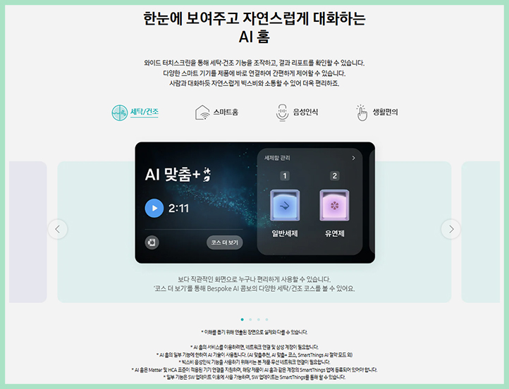 세제와 유연제를 자동으로 넣어주는 AI 세제 자동 투입 기능을 더해 자동 세제