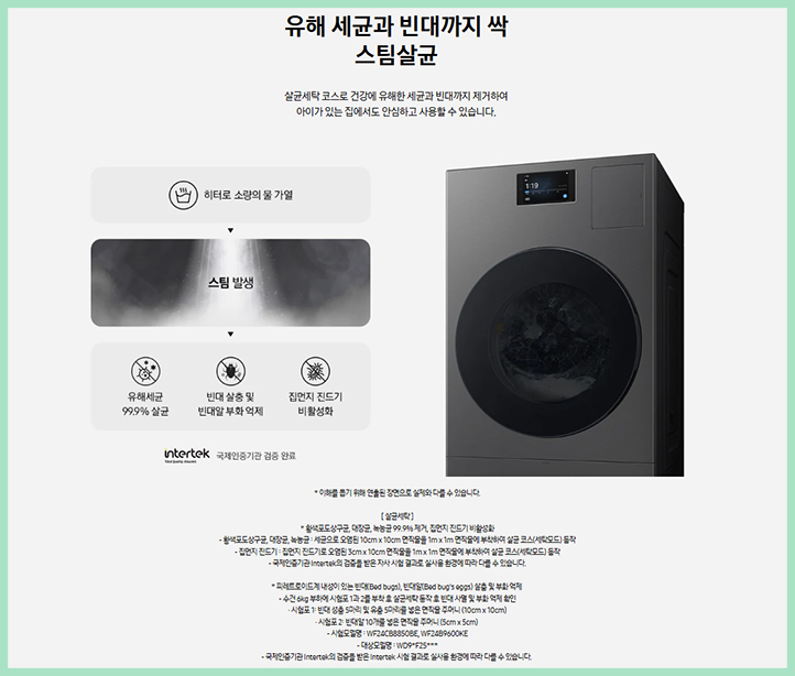 없이 케어해 주는 하나의 세탁건조코스로 시간을 절약해 드립니다