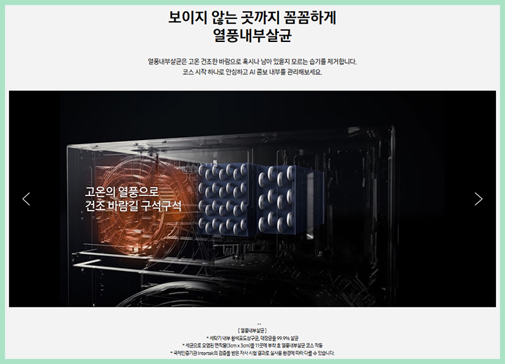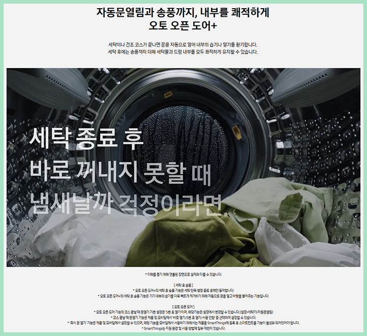 세탁이나 건조코스가 끝나면 문을 자동으로 열어 내부의 습기나 열기를 환기해