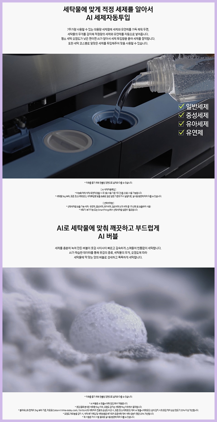 보다 편리하게 세탁과 건조를 할 수 있도록 AI 기술을 탑재하여 세탁물에