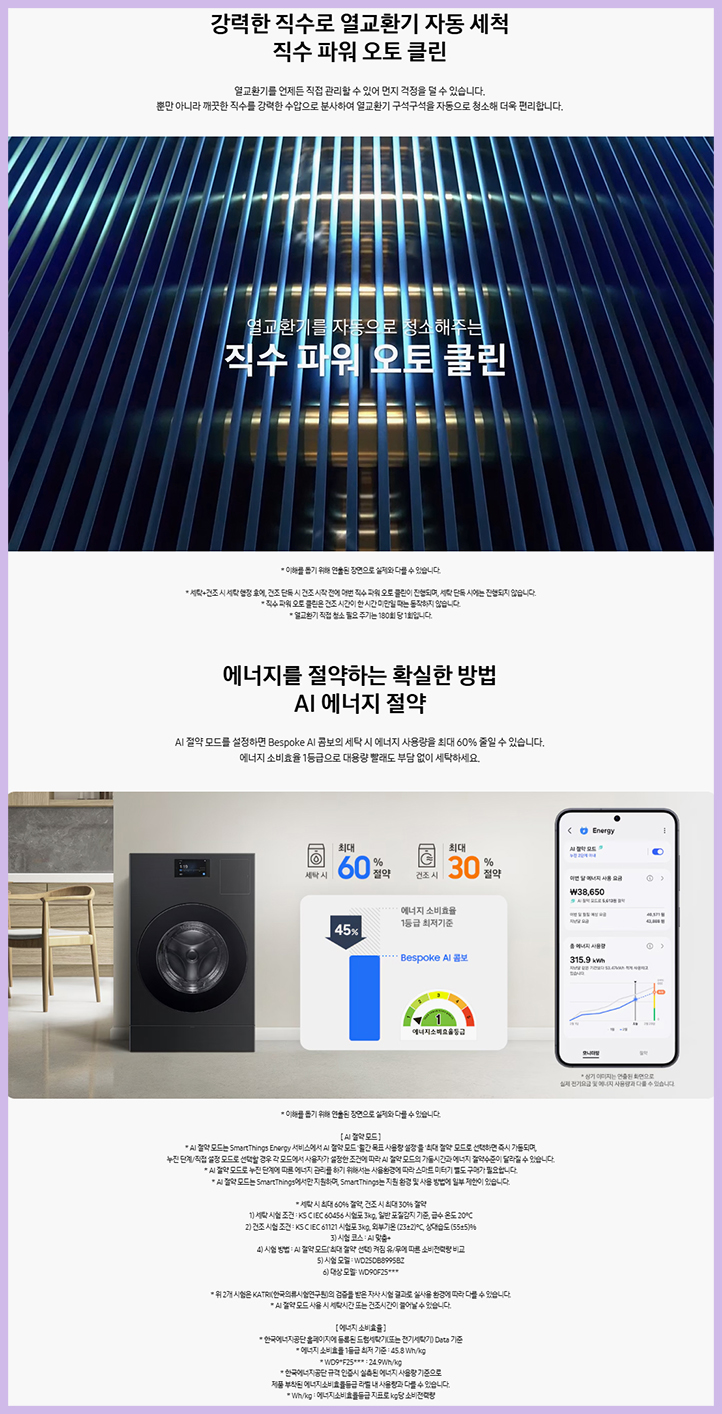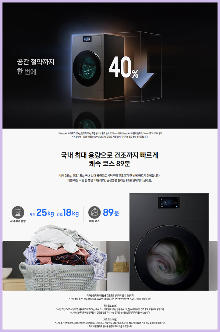 비스포크 콤보 세탁건조기 WD90F25CHB 장점 및 행사 정보