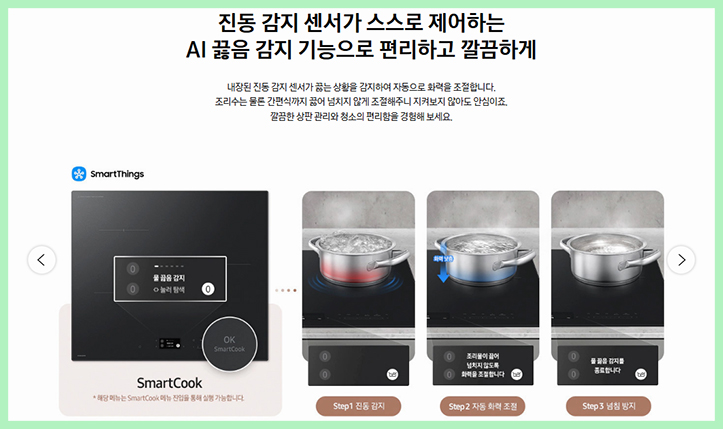 찌개 등이 끓는 상황이 되면 알아서 화력을 제어해 편리하고 깔끔하게