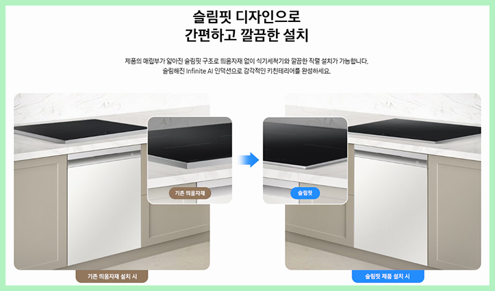 와 깔끔한 직렬 설치가 가능한데요 슬림해진 인피니트 AI 인덕션으로