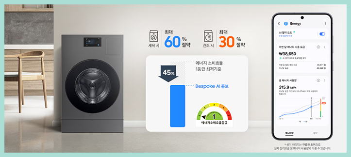 에너지 소비효율 1등급이면서 AI 절약모드를 통해 에너지 사용량
